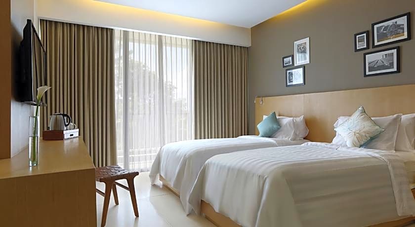 Air-conditioned room with flat-screen TV and balcony.